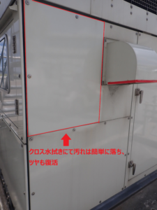 本コート剤は、自動車用の技術を応用したガラス系コーティング剤で、透明な保護膜が経年劣化による色褪せやチョーキング(白亜化)した塗装面を新品同様の色ツヤに復活させ、塗装面の再劣化を抑制し、水拭きだけで美観を保つことができます。