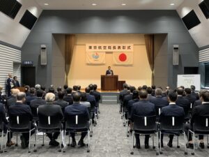 式典は、今井和哉東京航空局長の式辞から始まり、表彰分野ごとに表彰者の名前が呼ばれ、代表者が表彰状を授与される形式で執り行われ、来賓祝辞と表彰者代表からの謝辞をもって閉式しました。
