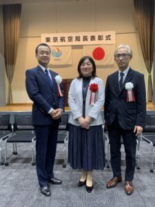 東京航空局長表彰の式典で、当社社員(木下優子)が航空事業の功労者として表彰状をいただきました