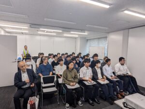 2024年6月22日、福岡国際空港株式会社様ならびに日本航空株式会社福岡空港支店様(JALスカイ九州)と連携し、崇城大学工学部宇宙航空システム工学科の学生(32名)向けの職場見学会を当社福岡空港支店で開催しました。
