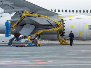 各航空会社は、航空機の機体洗浄を定期的に行っています。機体洗浄には美観の維持や、塩害による腐食防止、さらには機体が綺麗になることで空気抵抗が低減し、燃費向上の効果もあります。しかしながら、機体洗浄を行うためには大量のマンパワーを投入しなければならない課題もあります。